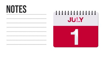 July 14 Calendar Animation with Free Space for Notes and Writing 4K motion graphic element