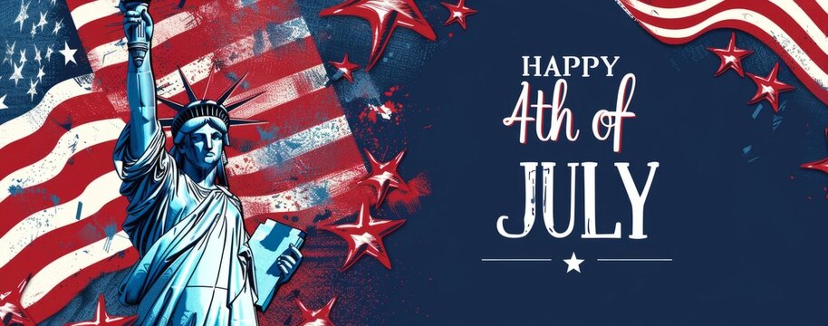 4 th of July poster.USA independence day celebration with American Star balloon. USA 4th of July promotion advertising banner template for Brochures,Poster or Banner.USA