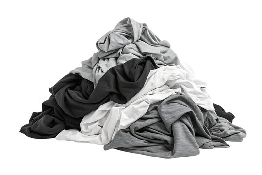 Large pile of crumpled colorful clothing including shirts, pants, and fabric pieces jumbled together, isolated on a transparent background