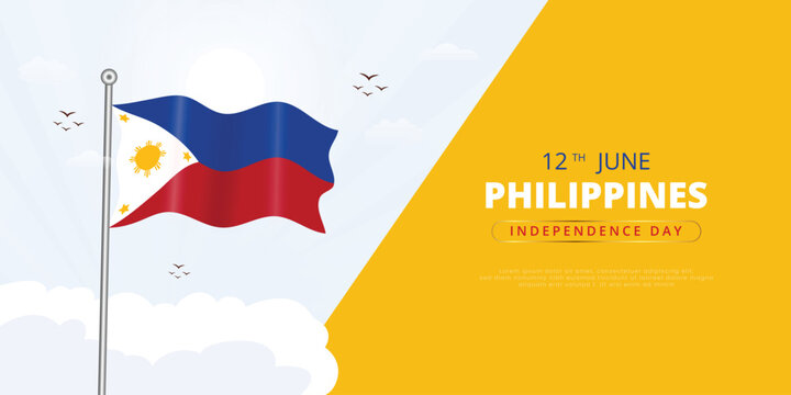 June 12th Is Philippines Independence Day. Philippines flag, sun and cloud. Suitable for posters, banners, social media and more. Blue sky background.