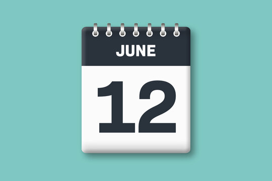 June 12 - Calender Date  12th of June on Cyan / Bluegreen Background