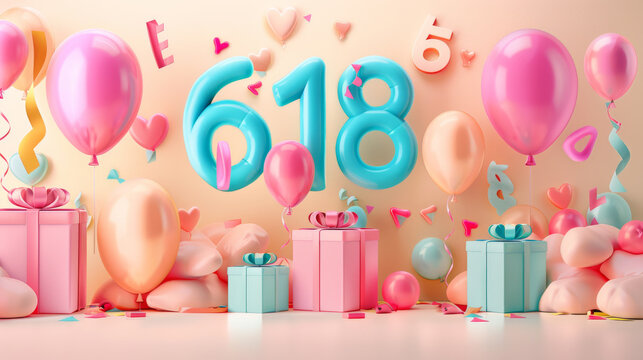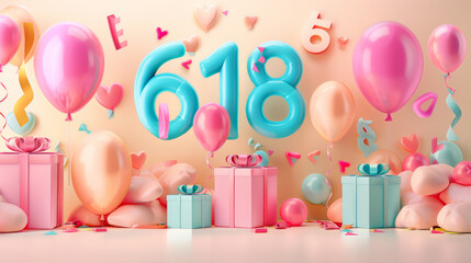 Wooden Blocks with Date 18 June. Floral Calendar – Vibrant Flowers on Solid Colored Background