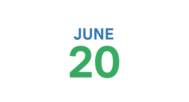 Conceptual design illustrating the date June 20th in vivid color scheme against a stark white background offering simple and contemporary style