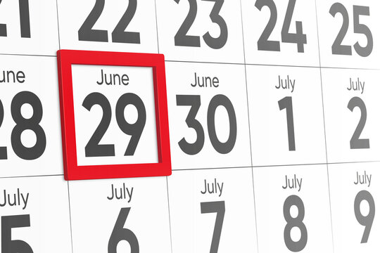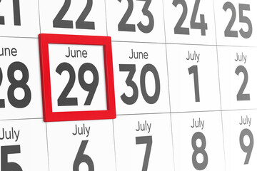 June 29 written on a calendar to remind you an important appoint