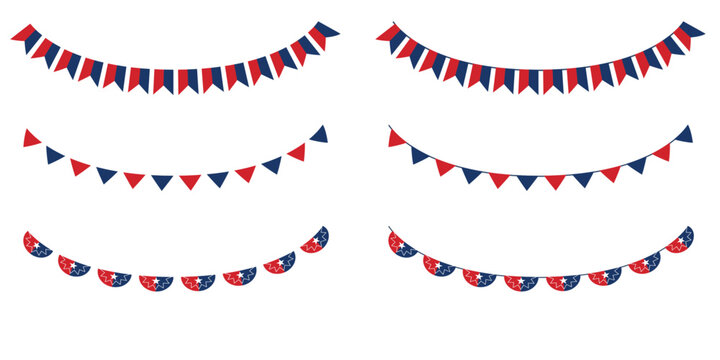 Juneteenth red and blue bunting flags. isolated on white background.