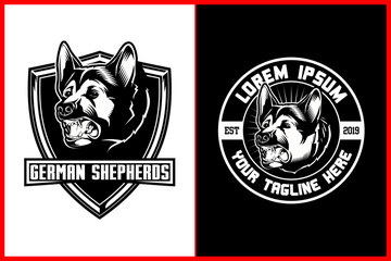German shepherd dog silhouette vector badge logo template