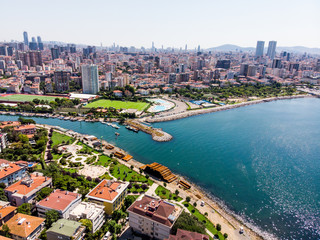 Aerial Drone View Kadikoy Moda Kurbagalidere Gulf in Istanbul