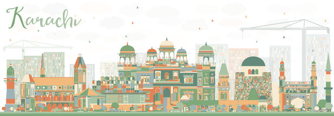 Abstract Karachi Skyline with Color Landmarks.