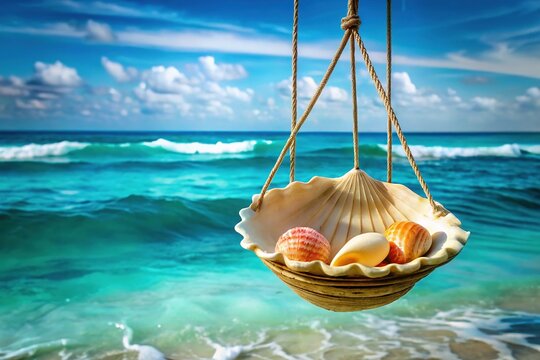 Serenely suspended amidst turquoise waves, a delicate sea cradle floats gently, its intricate shell swaying to the rhythm of the ocean's soothing melody.