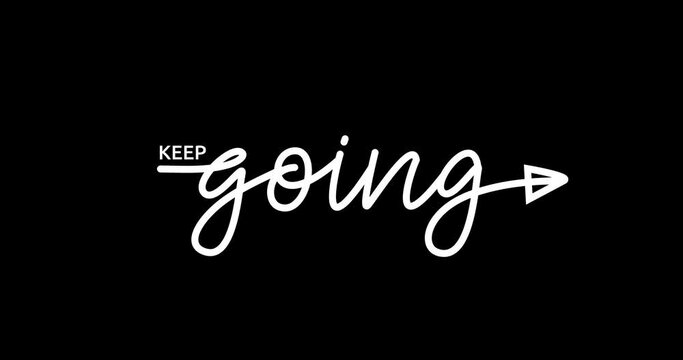 Keep Going text animation. Handwritten monoline calligraphy with swashes animated with alpha channel. Great for motivating video and slogan quotes. Transparent background, easy to put into any video.