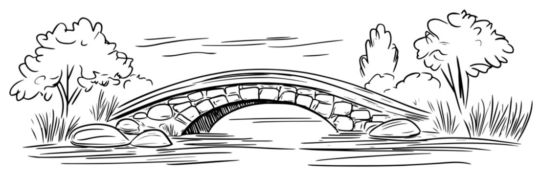 stone bridge over river park landscape sketch vector
