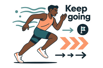 Dynamic Sprint Illustration. Runner in motion. A sprinter slices through ribbons of air; ?Keep going? floats above pace marks. Footsteps align as bold chevrons