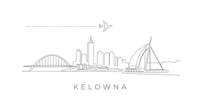 Kelowna Skyline with Line Art, Airplane, and Minimal.