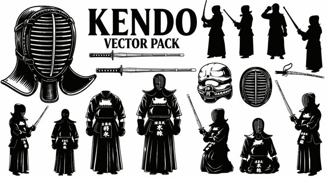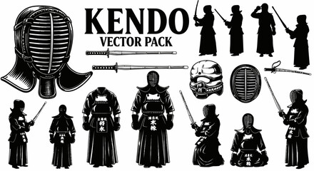 Kendo vector set Japanese martial art icons.