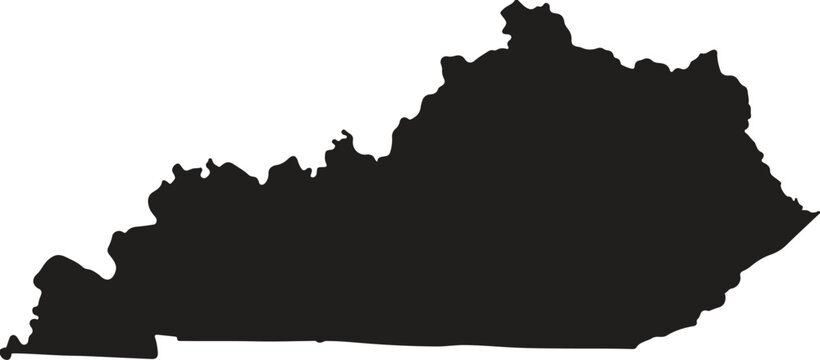 Contour map of the state of Kentucky, USA. Vector graphic illustration on a transparent background with black region borders