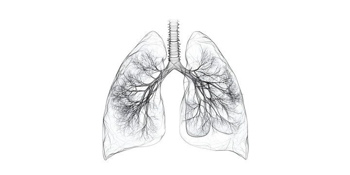 An illustration of lungs on white background with one continuous line of anatomy, kept on white or transparent background