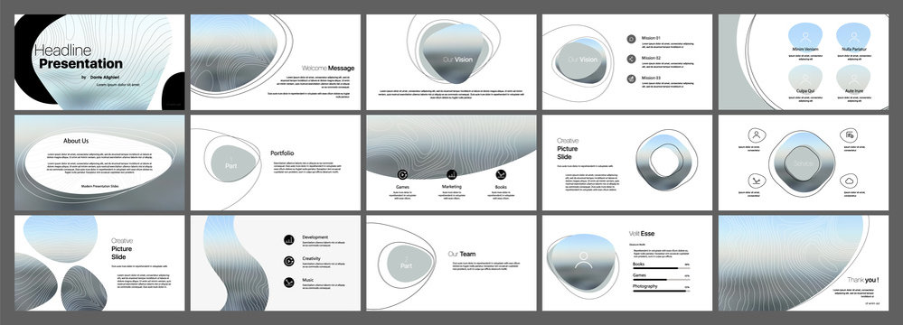 Presentation and slide layout template. Design blue gradient in paper speech shape background. Use for business annual report, flyer, marketing, leaflet, advertising, brochure, modern style.