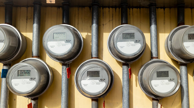 Close-up view of electrometer measuring electricity consumption. kWh counter.