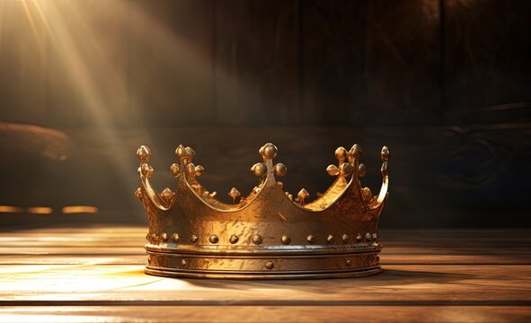 Golden crown, symbol of divine kingship and sovereignty. Jesus, King of the Kings and Lord of the Lods. Concept of authority, majesty and ruler of heaven and earth. Christian concept.