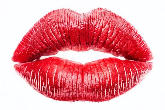 Vibrant red lipstick kiss mark on a clean white background, showcasing beauty and expression in a striking design.