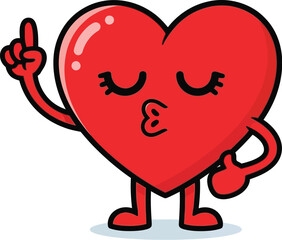 Playful cartoon heart character making a kissy face and holding up a finger.