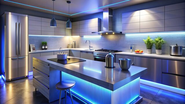 Design of a professional kitchen for a restaurant or cafe. Metal table. Kitchen equipment for catering. Cooking space