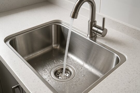 water drains down a stainless steel sink