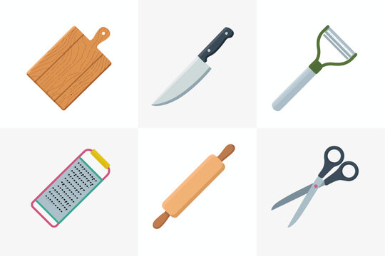 Bundle of recipe card templates for making notes about preparation of food and cooking ingredients. Clean cookbook pages decorated with colorful kitchen utensils and vegetables. Vector illustration.