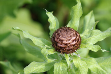 Brown bud of giant knapweed in close up