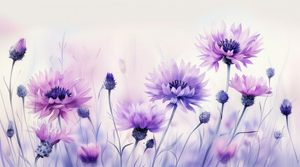 Violet watercolour cornflower knapweed centaurea spring meadow flower illustration. Floral blooming painting