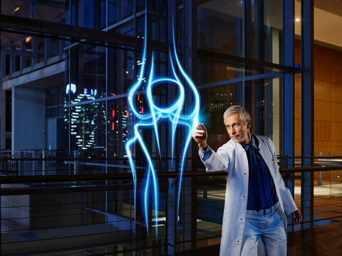 Knee ligament and meniscus, human leg, medically accurate representation of an arthritic knee joint