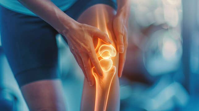 Close up vfx animation  person with joint and knee pain from leg trauma or arthritis