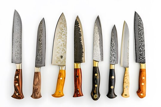 Knives: Sharp Blades, Exquisite Craftsmanship, Wooden Handles, Variety of Sizes, Damasteel Pattern