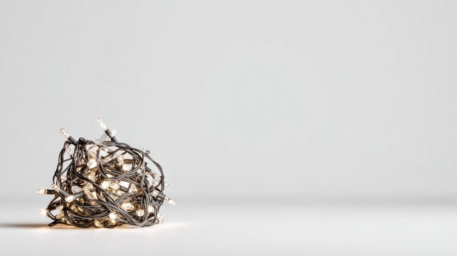 Christmas lights clustered on white background