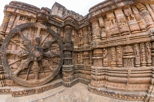 800 year old Sun Temple, Konark Odisha, India. Designed as a chariot consisting of 24 wheels which are sundials to measure movement of sun and planets. Unesco World Heritage Site.