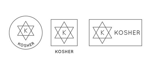 Set of Kosher Sign for package. Kashrut product sticker mark. Vector