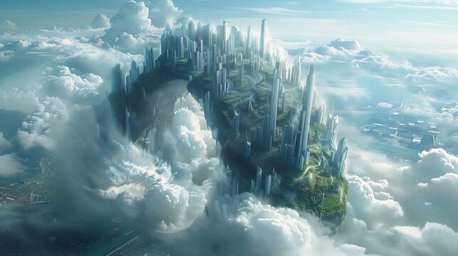 tall island middle clouds flying city riven league legends krypton cubes gently caressing earth liminal space heavens lofty spiral