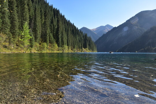 The beatiful Turquoise mountain Lake Issyk Kul close to Almaty in Kazakhstan