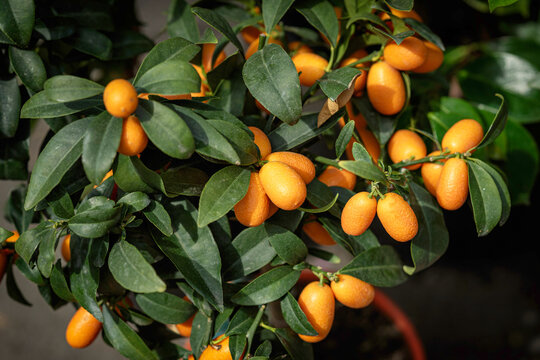 Exotic kumquat fruits, rich fruit harvest close up