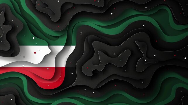 stylized digital rendering of the Kuwaiti flag with a textured paper background.
