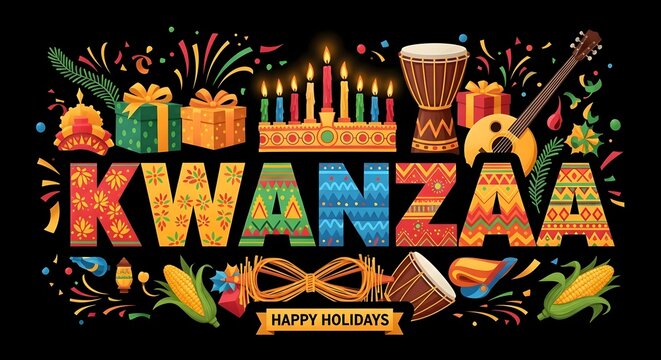 Kwanzaa Happy Celebration. African and African-American culture holiday.Happy Kwanzaa. Kwanzaa day creative concept.