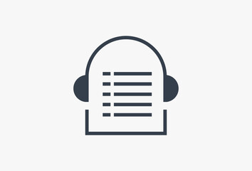 Music Listen List Logo. Outline Logotype Concept. Headphone and Play List Element for Business, Brand, Company, Corporate Related with Music, Audio, Sound, Note, Player, Song, App, entertainment,