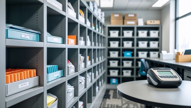A chef reviewing food stock levels in a kitchen pantry, with labeled containers and an inventory list