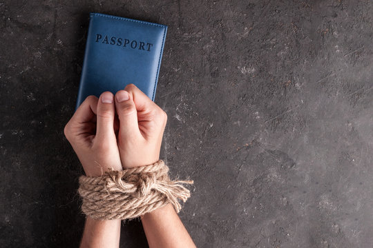 The concept of violence, slavery, the sale of people, violence against women. Restriction of freedom. Copy space. Top view