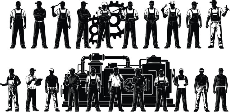 Watercolor style group of workmen,