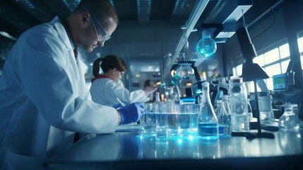 concept development research scientific pharmaceutical medical microscope laboratory tube test sample blood analyzing assistant technician lab virus science scientist service