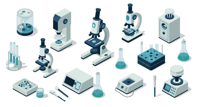 Modern isometric laboratory equipment collection for scientific research and…