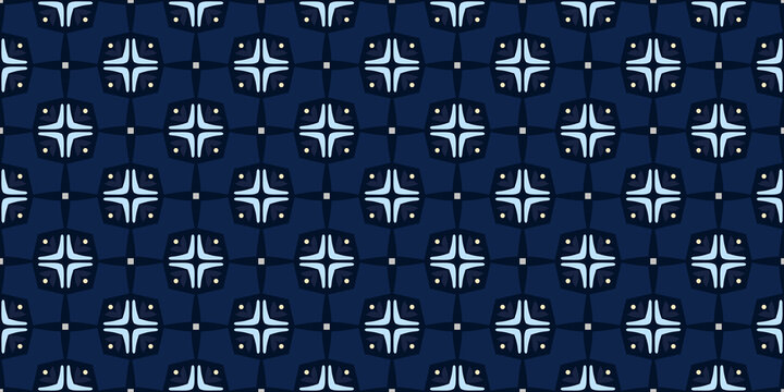 Elegant floral pattern abstract flowers motif seamless classic blue background. Modern fabric design textile swatch ladies dress all over print block.