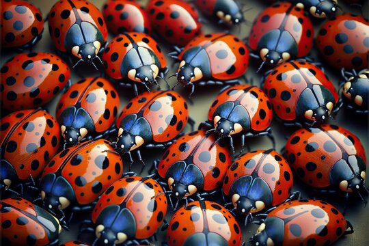 Many ladybugs, created with Generative AI technology