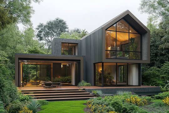 Creative flat lay composition of interior designer and architect moodboard. Textile and paint samples, lamella panels and lastrico tiles. Beige, black and green color palette. Copy space. Template.